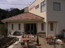 | オープンカフェ。 周りの田園風景を眺めながら のんびりと過ごせます。 |
